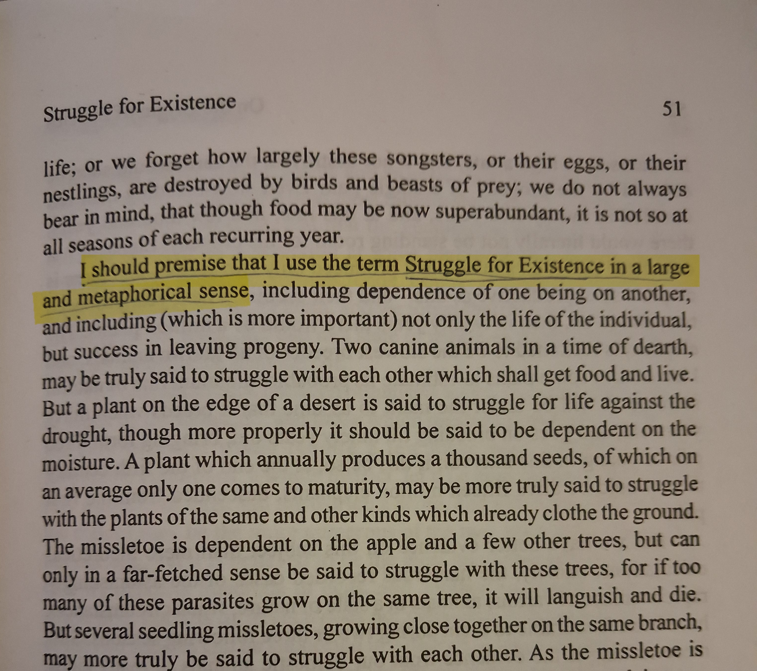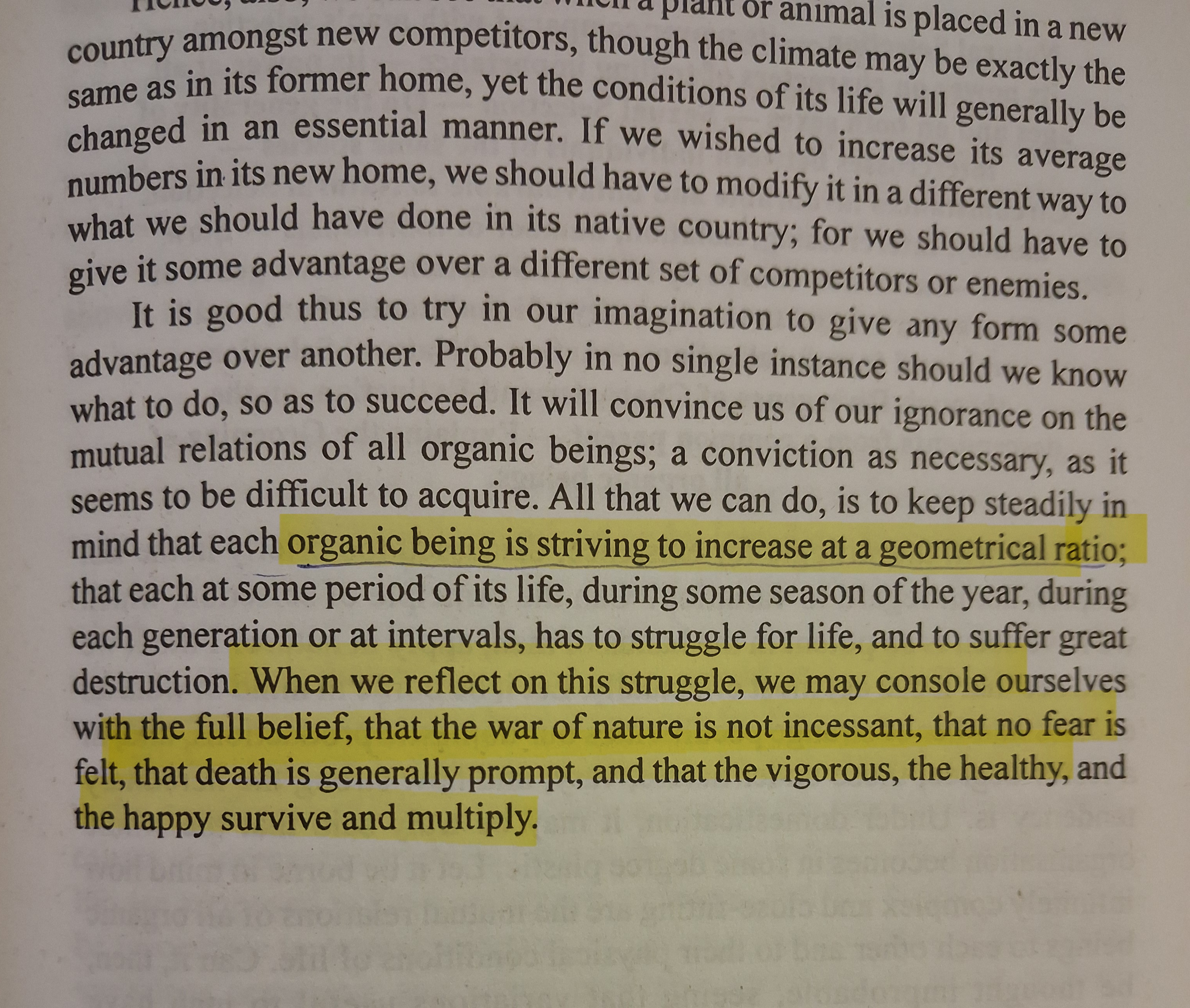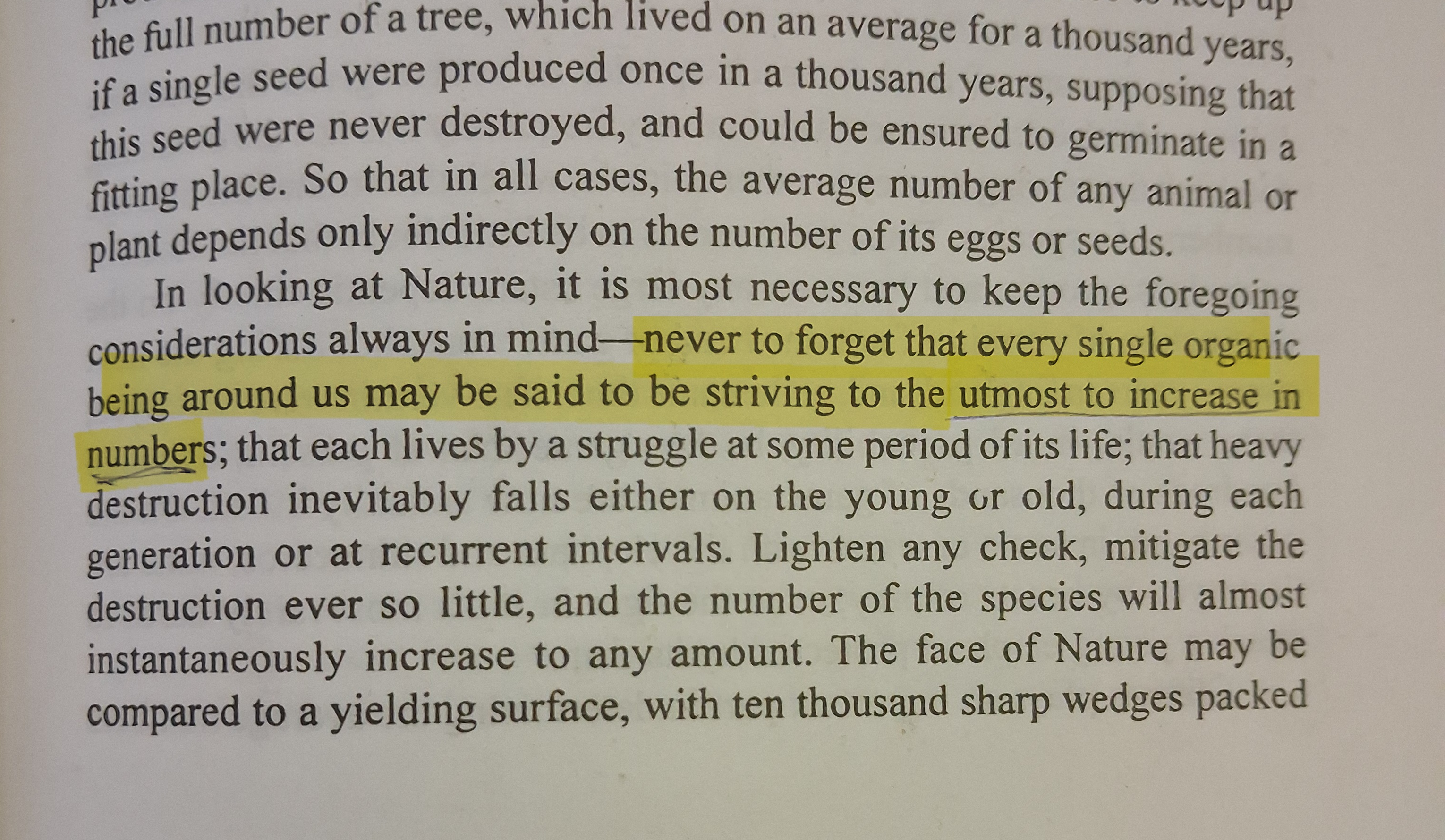 Darwin notes here that the goal of life is maximum expansion. The "utmost increase in numbers".