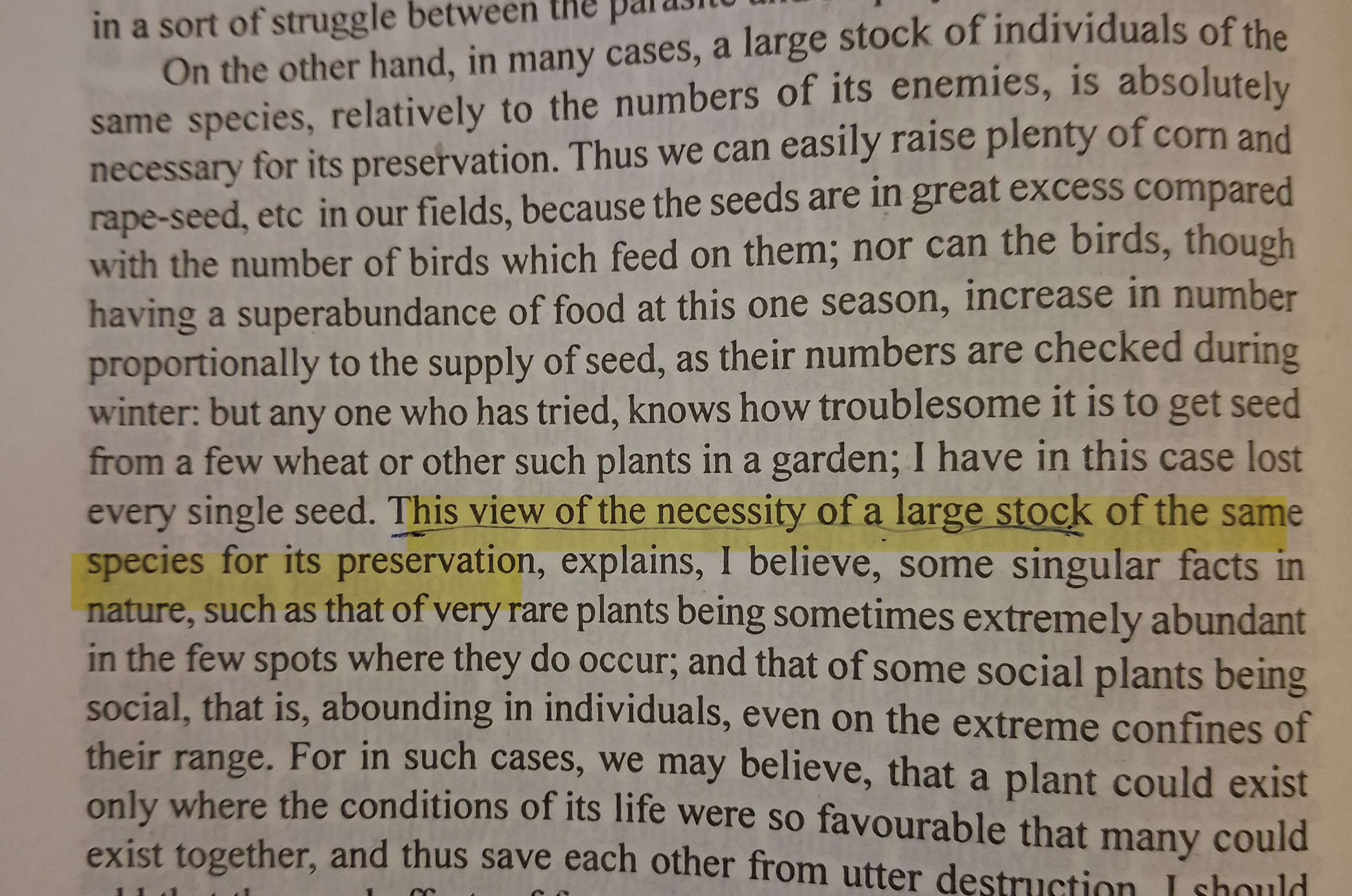 Darwin mentions that one of the tools a species has in order to protect itself from the struggle of existence is just being part of a large stock.