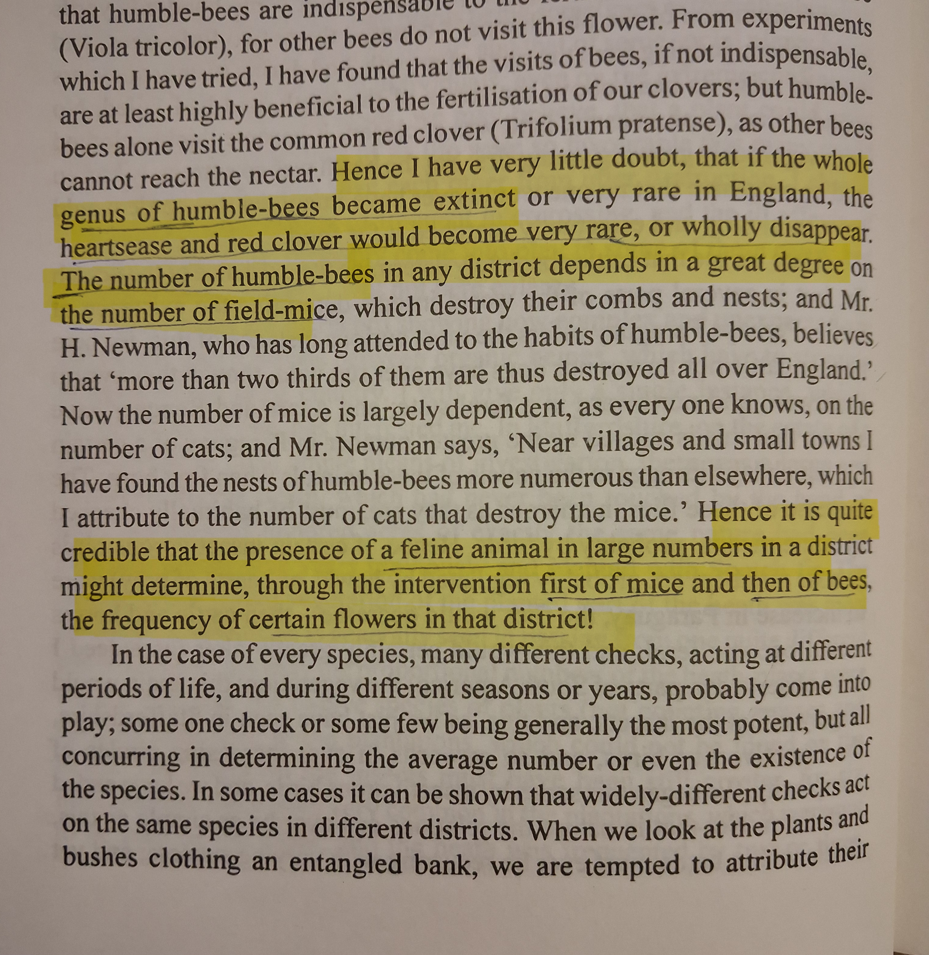 Darwin uses this example to show how interconnected the existence of different species is.